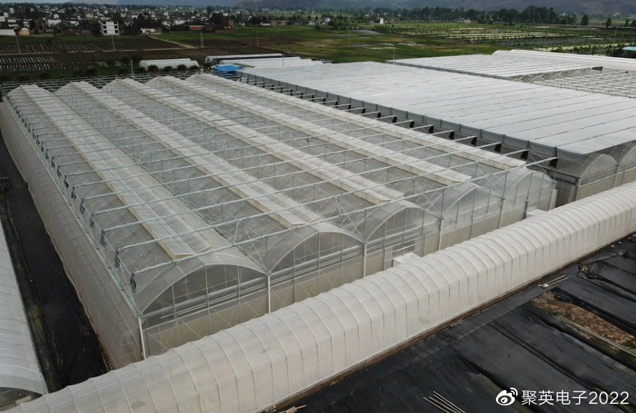连栋膜温室,镀锌方管、顶部半圆为主体结构,覆盖材料多为塑料薄膜,是一种新型的造价低、配置高、可全年种植的新型温室大棚。一般配有顶部外遮阳降温系统、顶部开窗通风系统、风机湿帘降温系统等配置,造价较高,大体在190-210元左右/平米。