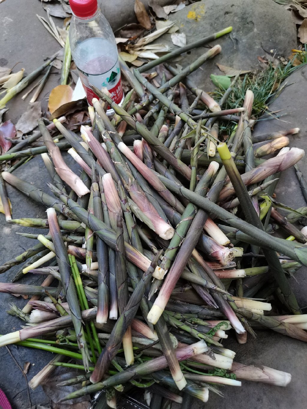 第二次扯笋我们同样收获满满,这一次我们叫上了她的两个同学,直到我下班去的时候,她们已经开始下山了,这一次的功劳几乎全部归功于我的对象。她们三人竟然找到了这个秘境,让我惊奇。我们四人一起简单吃了顿饭,又开始处理笋。