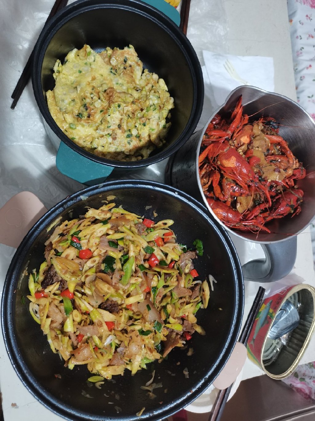 在去年因为受到疫情影响,我们被封闭在小区内,不能外出,直到三月初九,也就是2022年4月9日我们才去扯笋,非常遗憾这一次收获并不多。但是我们还是做了笋煎蛋和腊肉炒笋,非常美味,我们还叫上她的两个同学一起进餐,享受这个收获的时光。当然我们还做了美味的小龙虾——我对象最爱吃的美食。虽然我们错过了最佳的扯笋的时间,但是我们没有错过扯笋这个活动。
