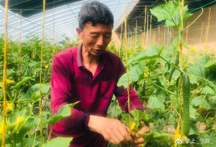 4月的平罗,春意盎然,走进黄渠桥镇万家营村,一排排高标准日光温室大棚整齐排列,温棚里,一垄一垄黄瓜叶厚茎肥,一朵朵鲜嫩的黄花点缀其中,把整个大棚染得绿意浓浓。汪光忠正和村民们忙着掐须、绑蔓,看着长势喜人的黄瓜,汪光忠干劲十足。