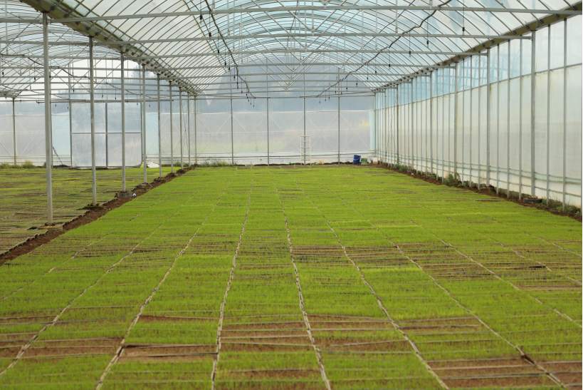 图为3月16日,春桥乡老山村产业钢架大棚内秧苗长势喜人