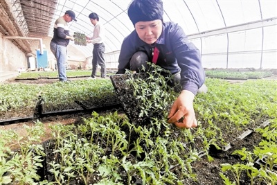【春耕备耕育苗忙 温室大棚春意浓】#今晚观津城# 正值春耕备耕,北辰区双街镇现代农业示范园发热工作人员抢抓时间育种蔬菜秧苗,确保园区春季播种顺利进行。随着春季温室大棚倒茬换茬的陆续展开,双街镇现代农业示范园的种苗繁育基地采取机器与人工相结合的育种作业,第一批8万多株绿油油的蔬菜幼苗在大棚里茁壮成长,大部分已经随时可以定株栽植。相对于直接在大棚内播种,提前做好育苗不仅可以有效降低人力成本、提高农作物的成活率,而且可以更精准地控制各类农作物的上市时间和产量,可以让不同的果蔬产品有计划地分批上市,保证游客在不同时间段来到园区,能够采摘到不同的农产品。(记者 高莹辉摄)