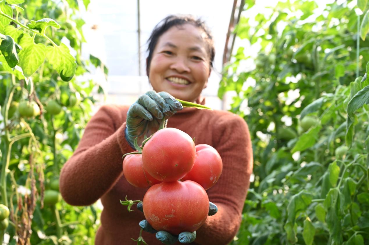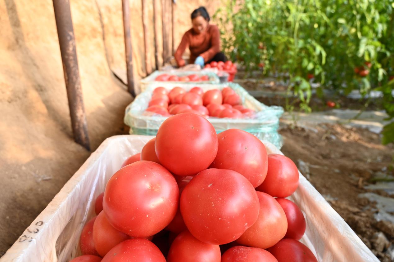 盐山县孙金村大棚内西红柿喜获丰收。 刘蒙蒙摄