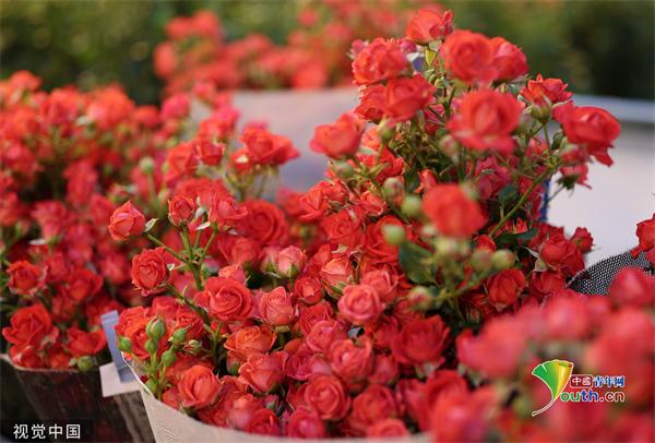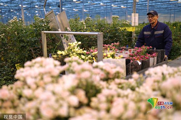 当地时间2023年3月1日,俄罗斯克拉斯诺达尔地区,妇女节前夕,温室内的玫瑰花。