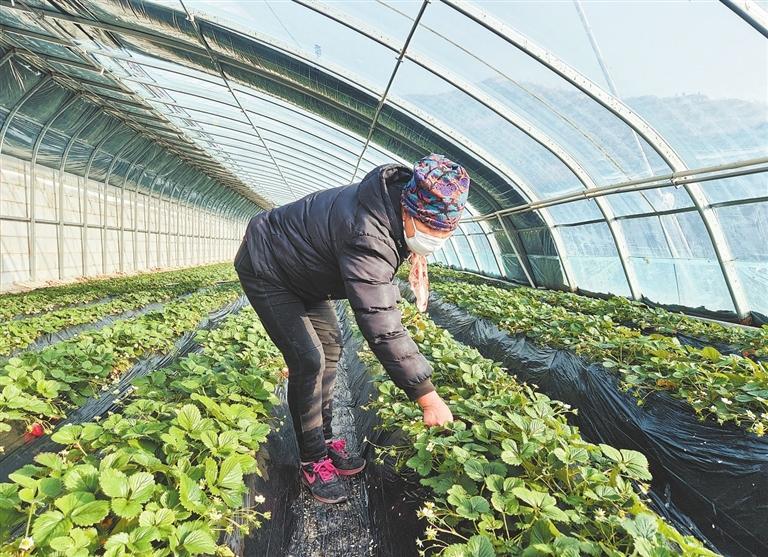 春节期间,种植户洪桃仙承包的温室草莓迎来了新一茬的成熟期,为迎接销售旺季,她每天都要去棚里查看长势,打理枝叶。“今年草莓品种多、品质好,吸引了许多城乡游客来采摘游。”洪桃仙介绍说。