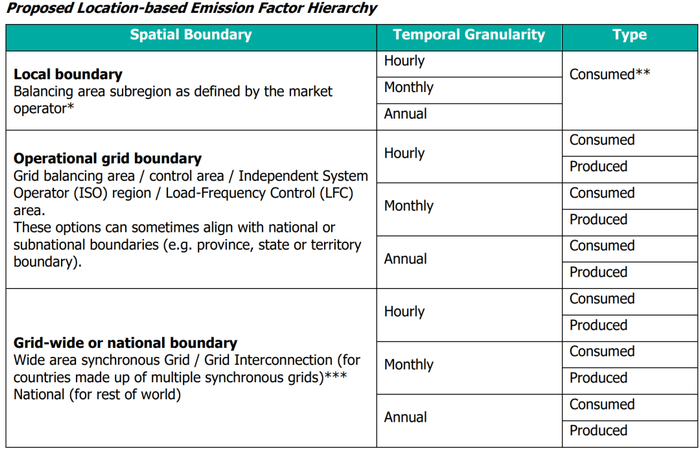 修订稿在“位置法”中引入了新的排放因子层级体系,包含:“空间边界”、“时间颗粒度”以及“类型”,企业在使用“位置法”进行范围二核算时,应参考该体系进行排放因子的选择。