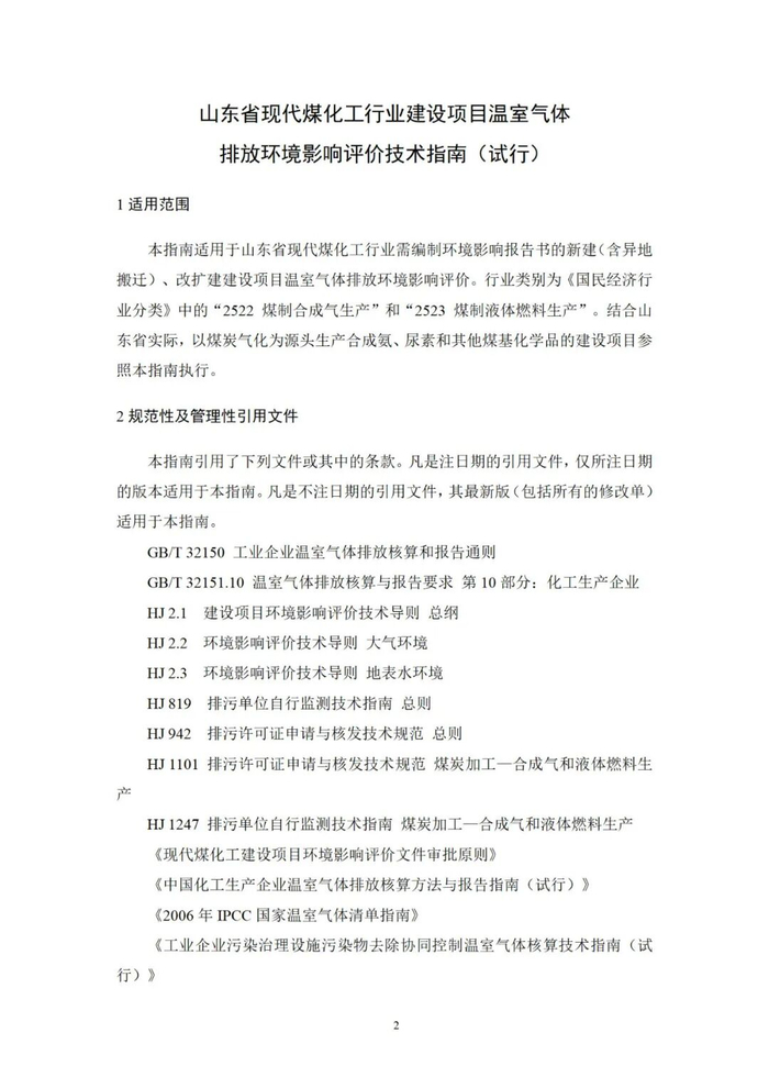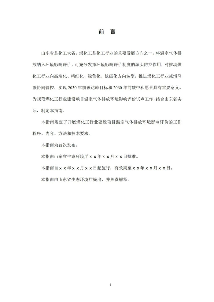 山东省生态环境厅关于征求《山东省现代煤化工行业建设项目温室气体排放环境影响评价技术指南(征求意见稿)》意见的公告