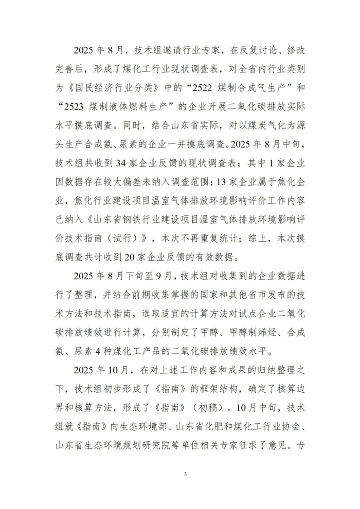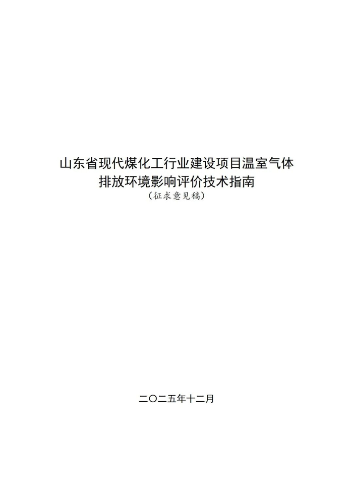 为明确现代煤化工行业建设项目温室气体排放核算方法,完善相关行业环评编制技术指南,支撑煤化工“两高”项目碳排放替代政策,我厅研究起草了《山东省现代煤化工行业建设项目温室气体排放环境影响评价技术指南(征求意见稿)》,现面向社会公开征求意见,有关意见建议请于2026年1月19日之前反馈至联系邮箱。