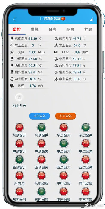- 远程控制:支持电脑网页端、手机APP远程操作卷帘机、风机、灌溉阀等设备。