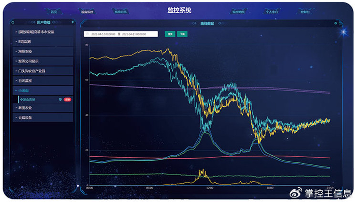数据存储与可视化:采集的环境、设备数据自动存储到云端,支持以数字、曲线图等形式展示,可按小时/天/周/月查看历史数据。