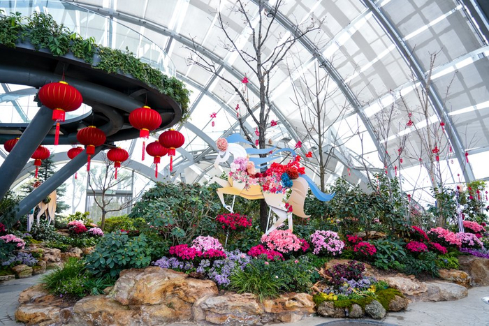 马年新春氛围日渐浓厚。新民晚报记者从上海植物园获悉,园内四座温室将于即日起至3月8日举办年宵花展。展览以“驰岁焕新,繁花贺春”为主题,四大展馆依托八匹骏马串联起来,风貌各异、亮点纷呈。